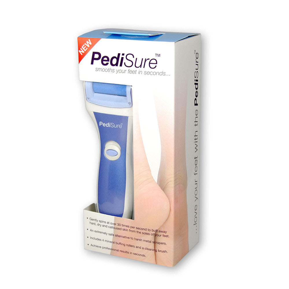 PediSure™ is a revolutionary portable pedicure system designed to gently and safely remove hard, rough, dry, cracked and callused skin from your feet and heels, providing professional salon-like results in seconds.